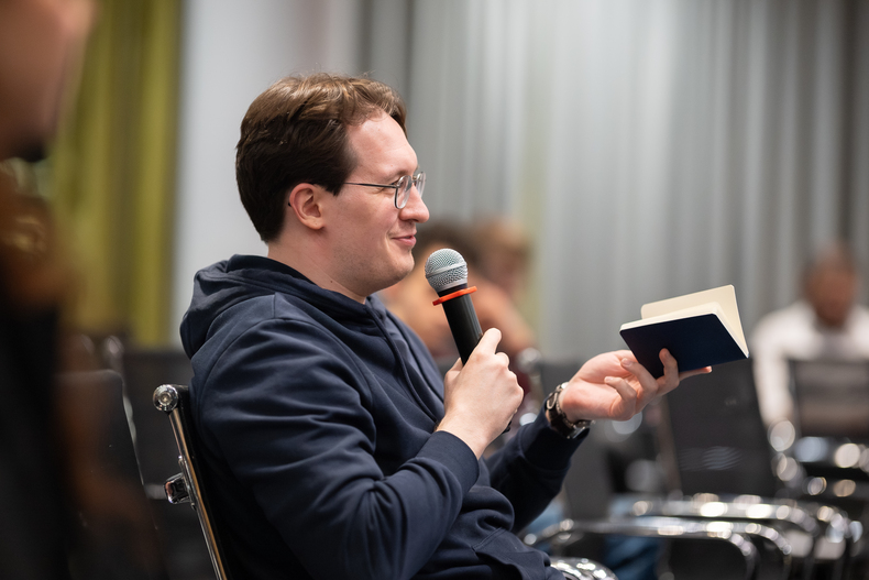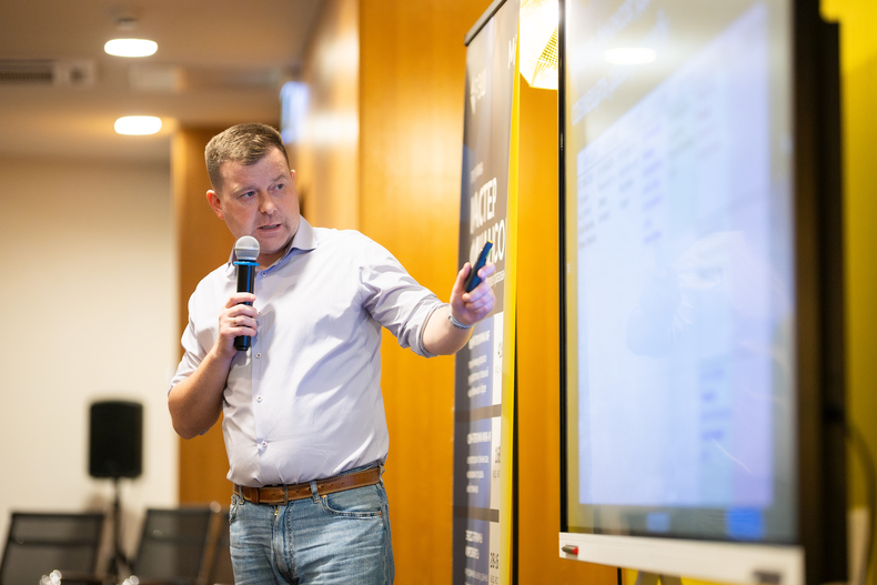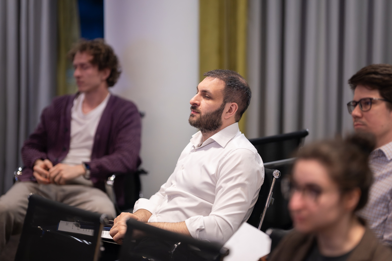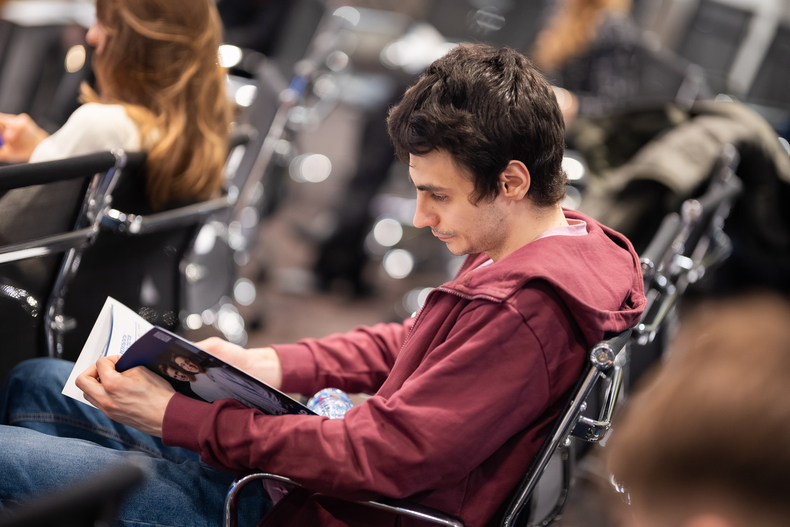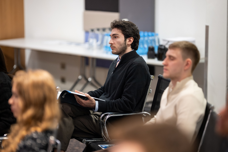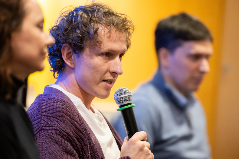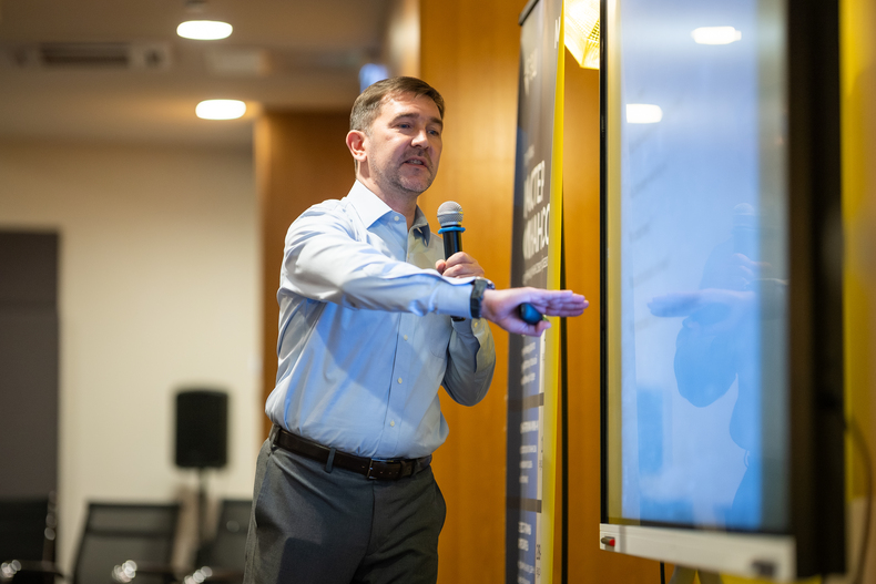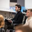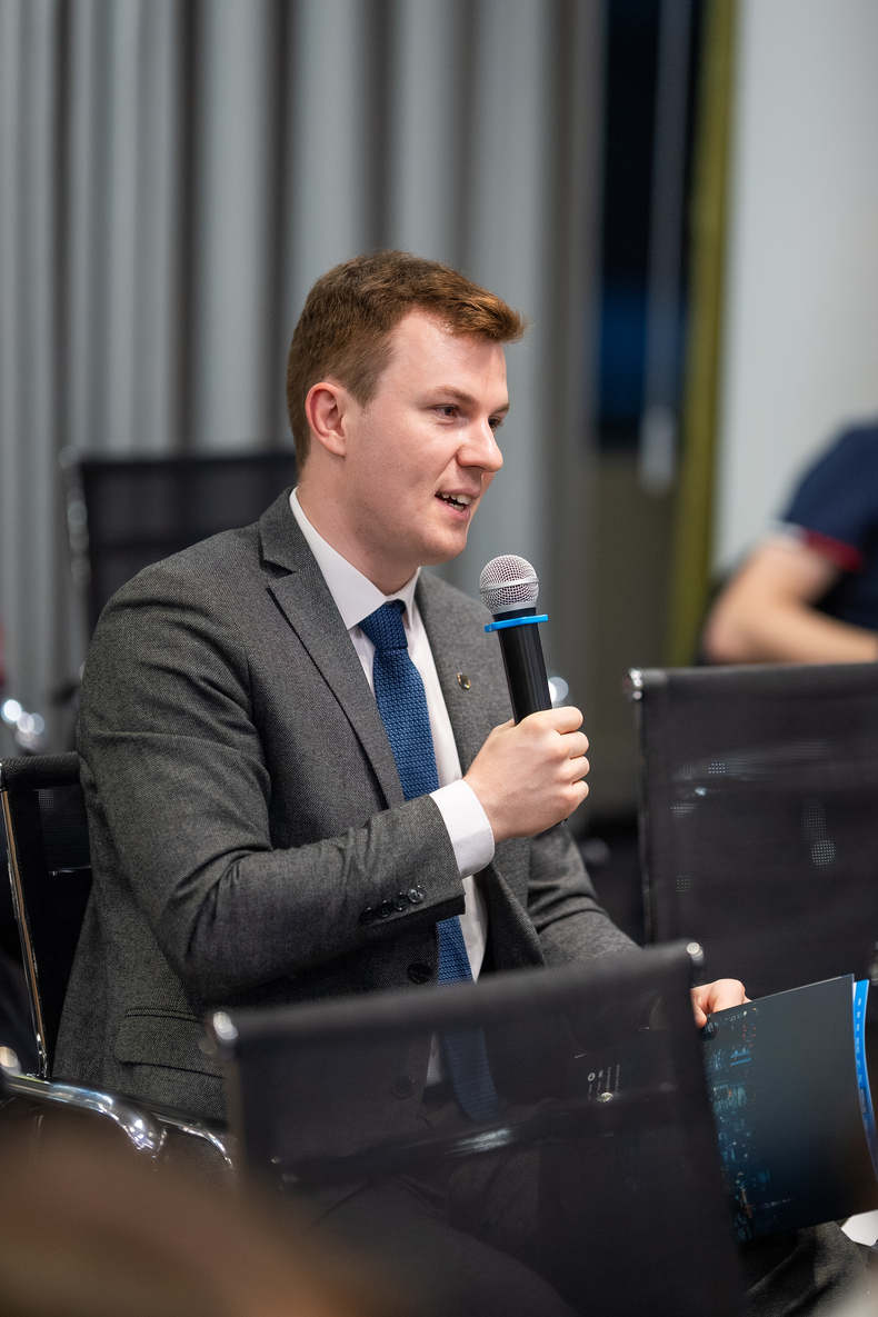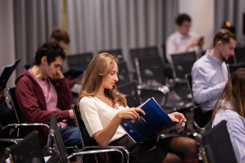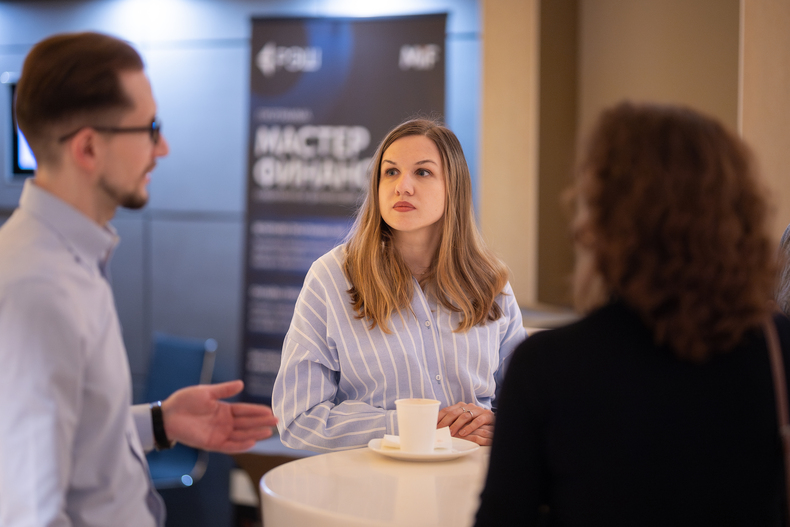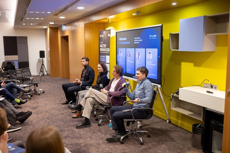 Ключевым событием вечера стали выступления студентов и выпускников программы. Они рассказали гостям мероприятия, почему пришли на программу «Мастер финансов» из разных отраслей экономики, и честно ответили на вопросы гостей об обучении.