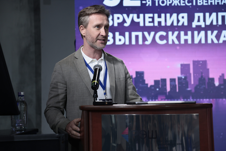 «Выпускной — это особый день, важный этап в вашей жизни. Надеюсь, учеба в РЭШ была для вас интересной. Вы набрали правильный импульс — вы на взлете. Желаю большой удачи в жизни. Очень важно беречь человеческие связи и развивать их. Для РЭШ опорой и точкой развития всегда были и остаются талантливые люди», — отметил ректор РЭШ. Он также поблагодарил все сообщество РЭШ, партнеров, доноров и друзей Школы за их доверие и поддержку.