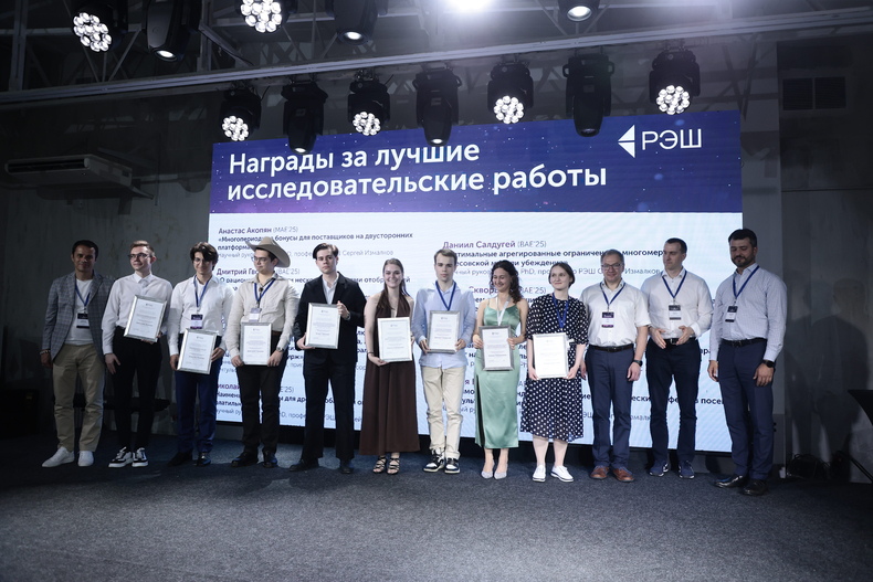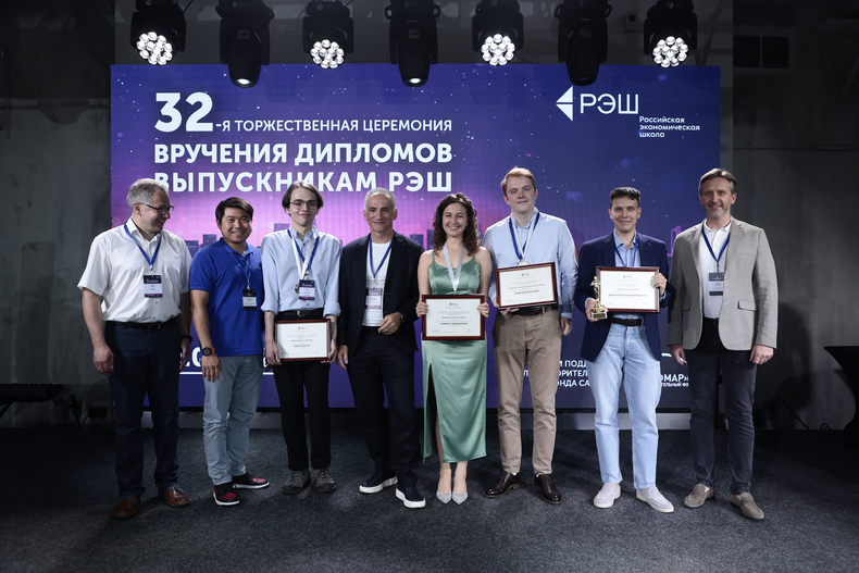 Также в рамках церемонии были награждены лучшие ассистенты преподавателей (teaching assistants) РЭШ. Почетный диплом имени Андрея Бремзена лучшему ассистенту преподавателя-2025 на программе «Бакалавр экономики» получила Софья Пирогова (BAE’2025). Почетный диплом имени Григория Косенка лучшему ассистенту преподавателя-2025 на программе «Магистр экономики» был вручен Ивану Попову (MAE’2025).
